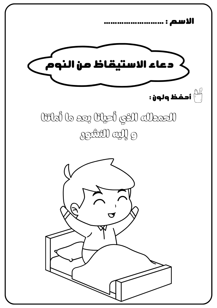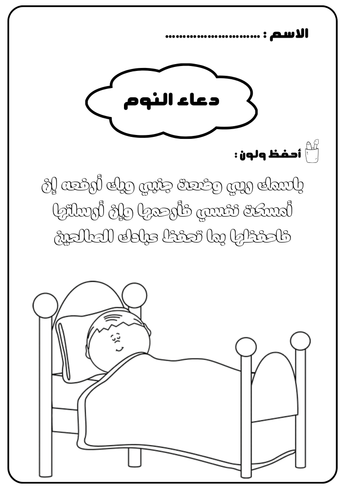 “وقت النوم صار أجمل مع أوراق عمل تلوين أدعية النوم للأطفال 🛏️💤