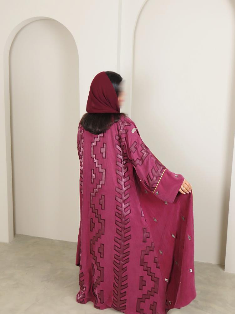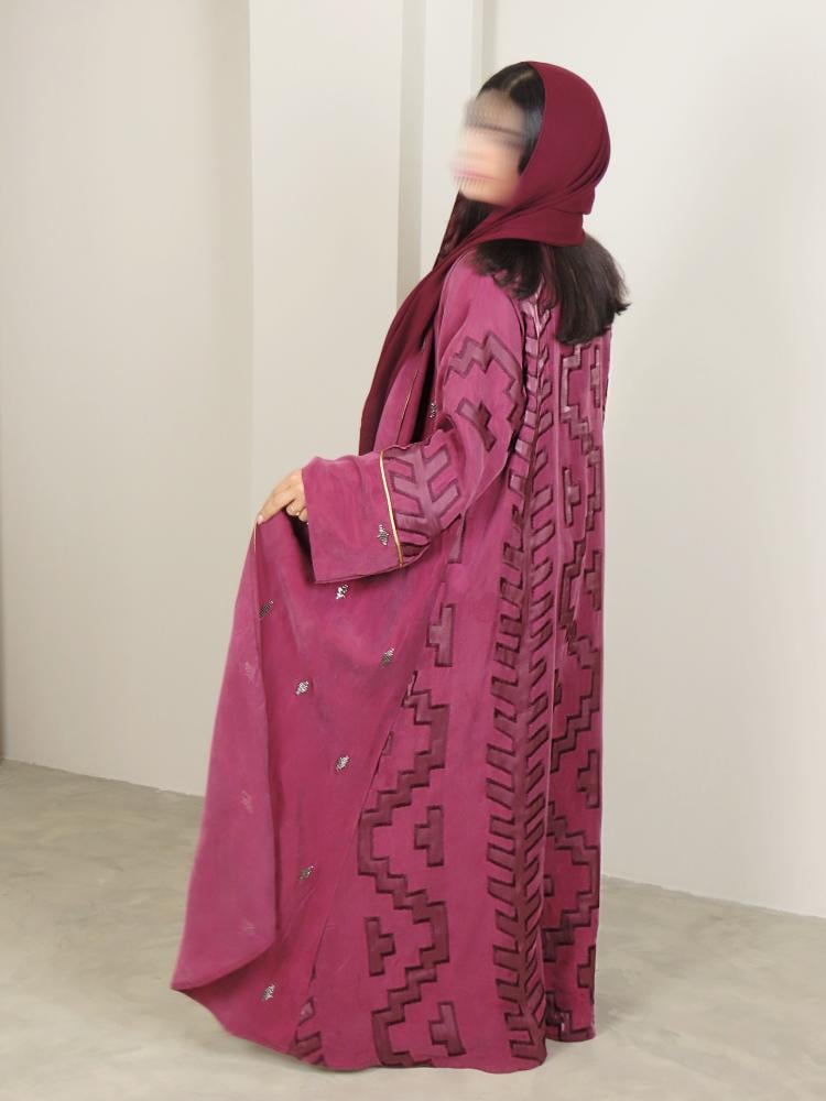 بنقوش مستلهمة من جدران قصر سلوى في الدرعية ، تروي هذه العباية ملامح القوة والاعتزاز بجذور الأرض
