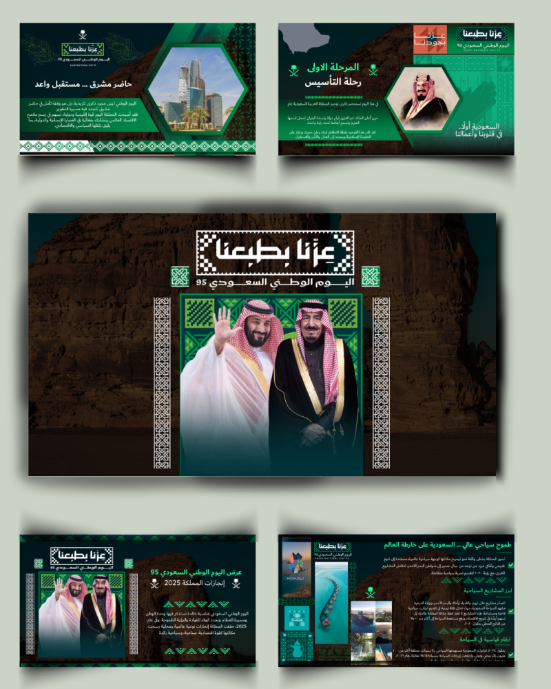- تصميمات و صور تعزز الهوية البصرية لليوم الوطني.