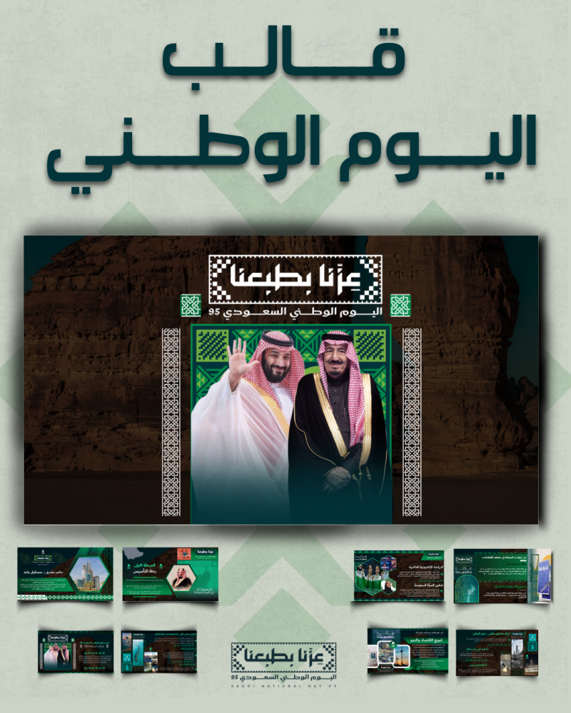 احتفل بإنجازات المملكة العربية السعودية بطريقة مبهرة واحترافية مع قالب العرض التقديمي المصمم خصيصًا لليوم الوطني الـ95.