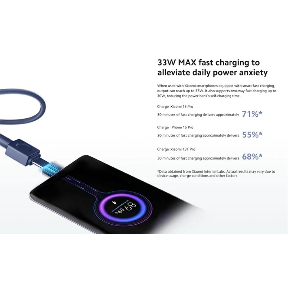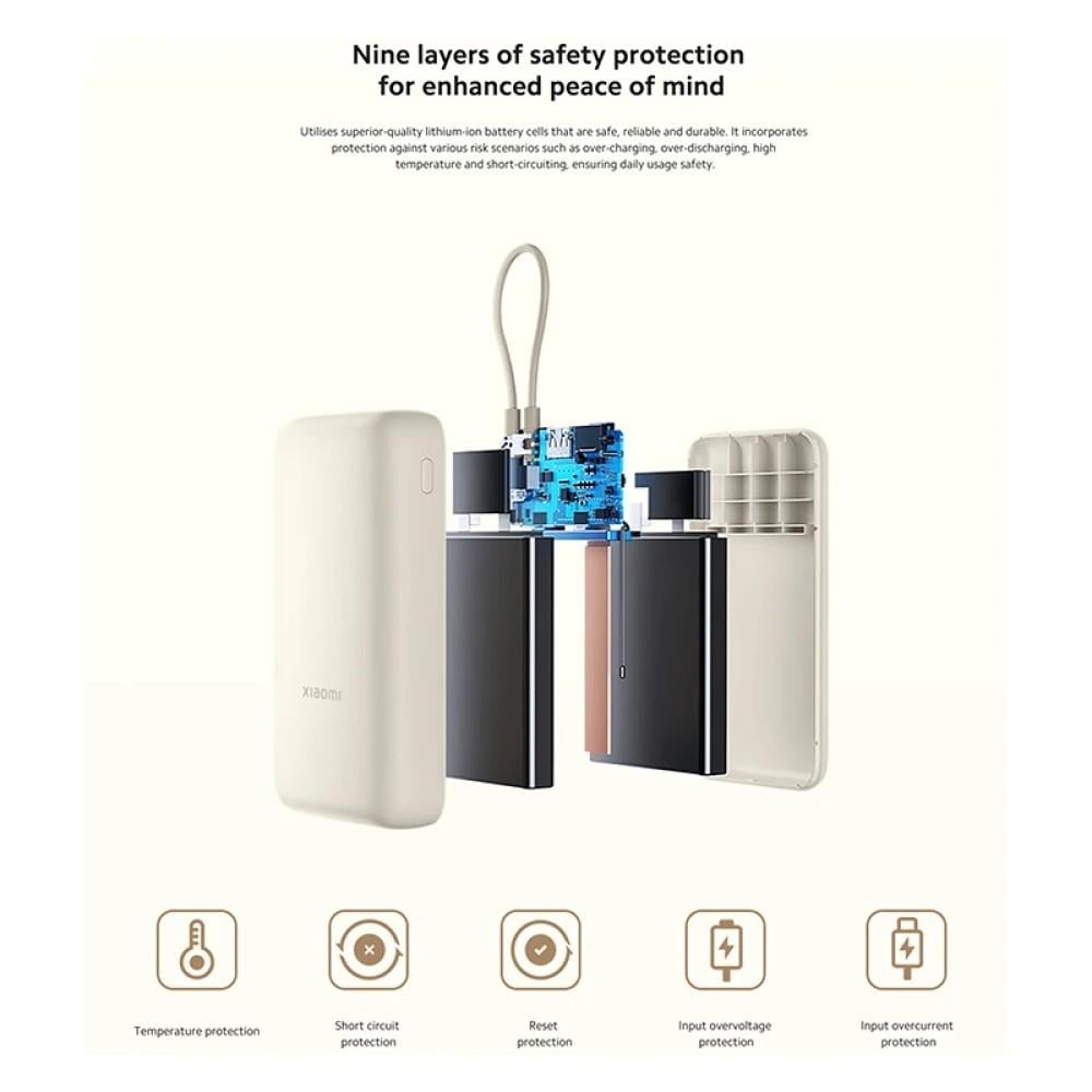 شاحن متنقل Xiaomi Power Bank Integrated Cable 20000mAh 33W هو جهاز ذو سعة كبيرة يتميز بقدرة شحن قوية وكابل مدمج لسهولة الاستخدام.