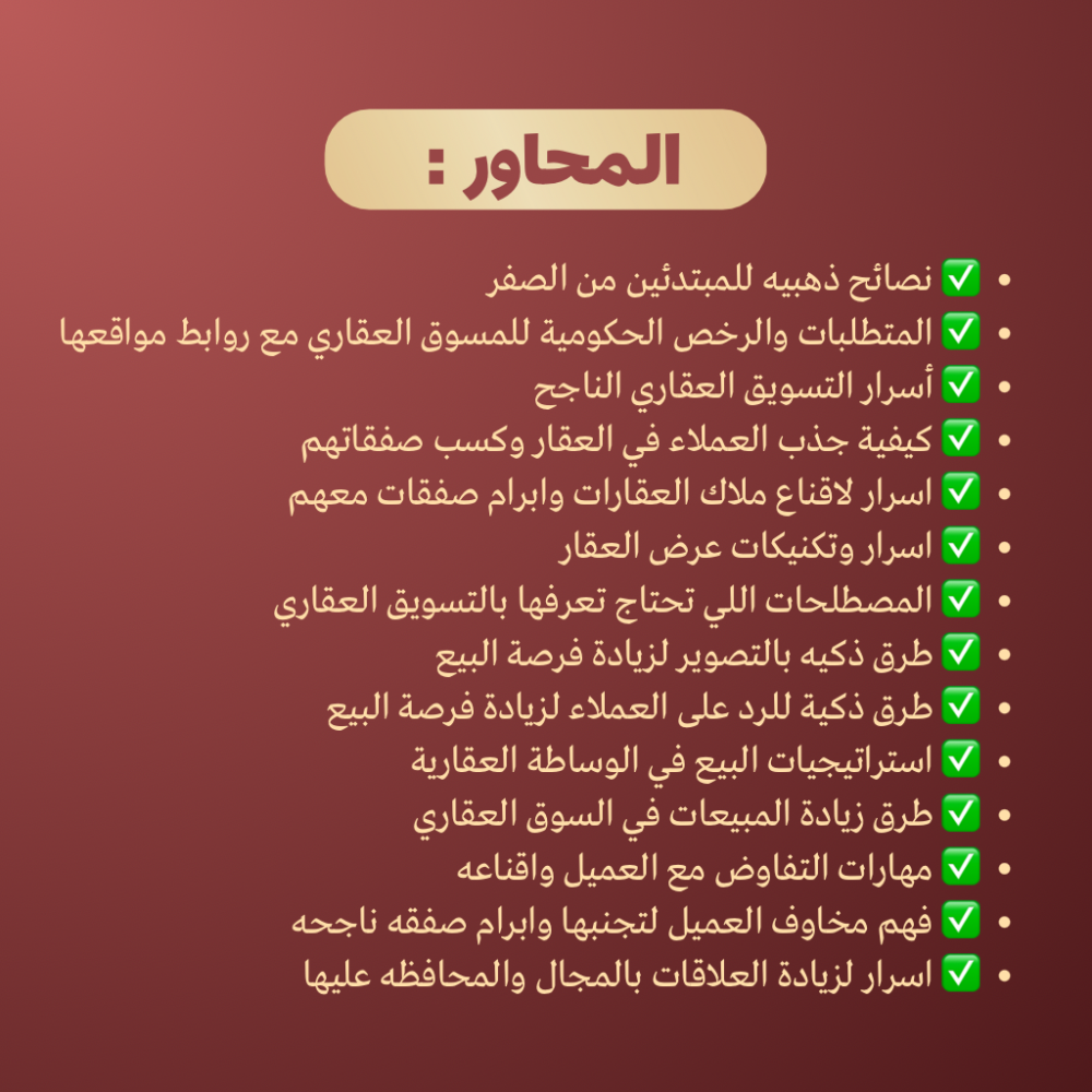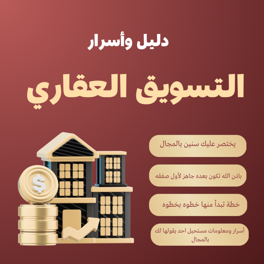 • لأنك راح تبدأ التسويق العقاري حتى لو خبرتك صفر بخطوات عملية واضحة.من اليوم