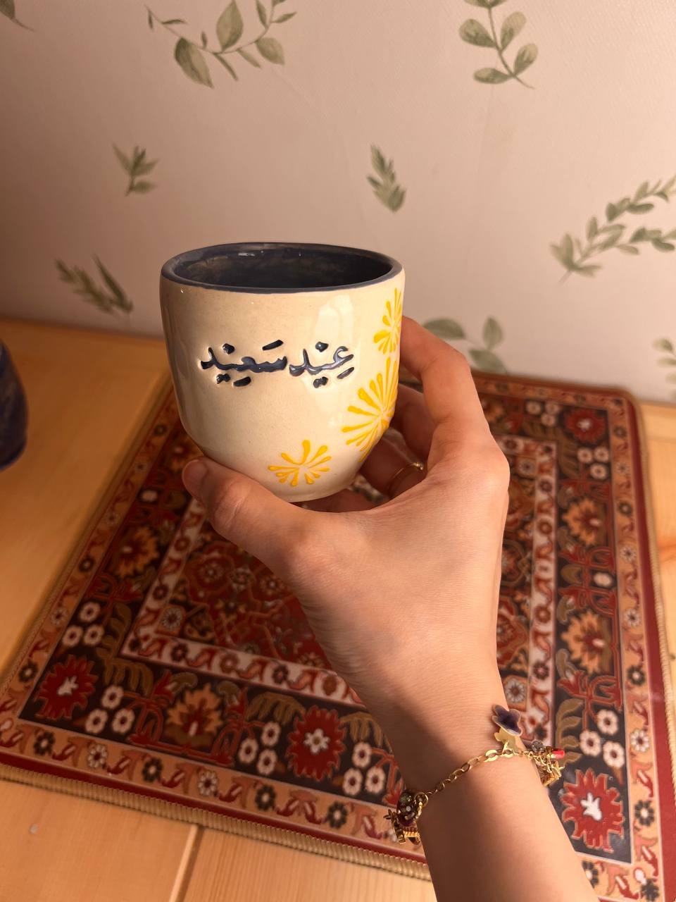 كل قطعة تُصنع يدوياً وتختلف نسبياً بالحجم واللون، لذلك لا يوجد كوبان متطابقان تمامًا — وهذا ما يجعل كل منتج تحفة فنية فريدة.