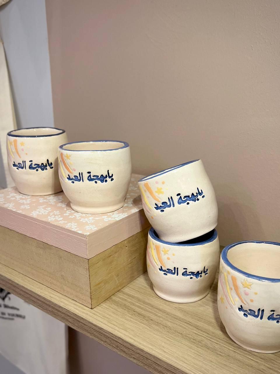 كل قطعة تُصنع يدوياً وتختلف نسبياً بالحجم واللون، لذلك لا يوجد كوبان متطابقان تمامًا — وهذا ما يجعل كل منتج تحفة فنية فريدة.
