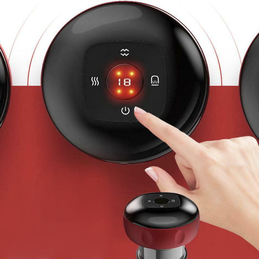 • ثلاث وظائف في جهاز واحد : حجامة بالشفط الديناميكي، تدليك بالاهتزاز، علاج بالضوء الأحمر الحراري