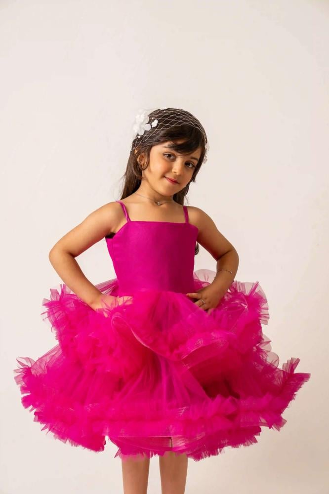 فستان وردي فوشي مفعم بالأنوثة والحيوية.