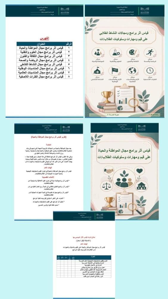 ملف احترافي شامل لقياس أثر برامج النشاط الطلابي على قيم ومهارات وسلوكيات الطلاب/ات بطريقة منظمة وجاهزة للتطبيق.