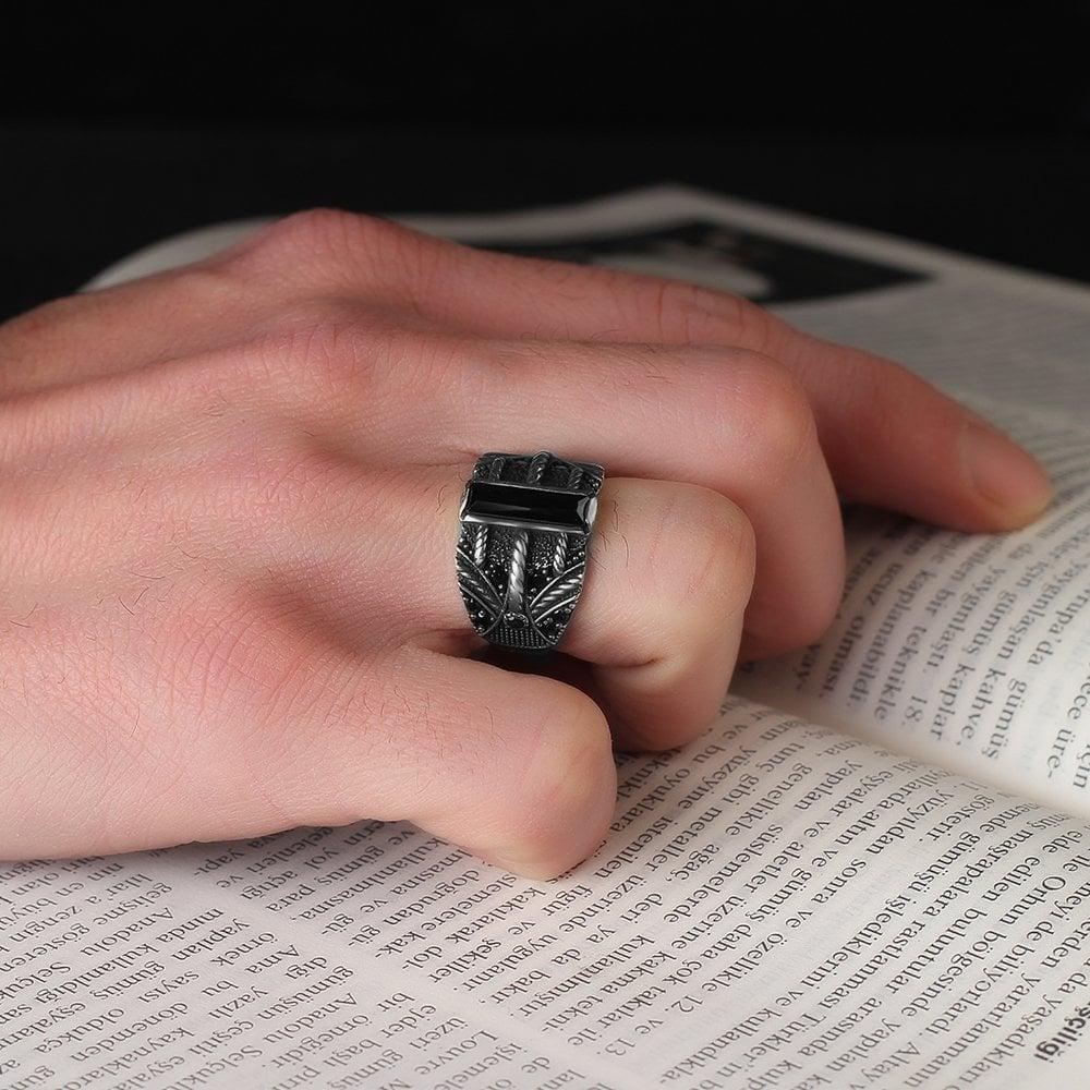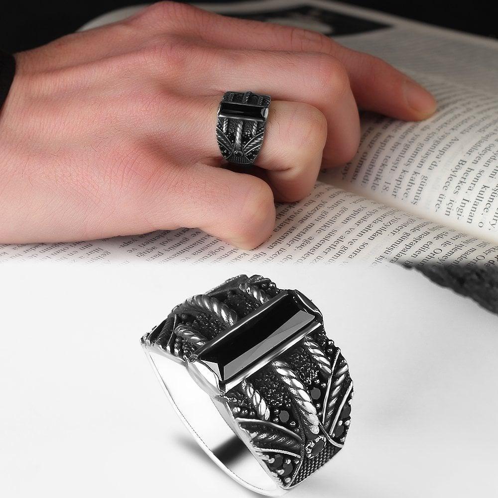 خاتم فضة بحجر رزكون مستطيل مستطيل