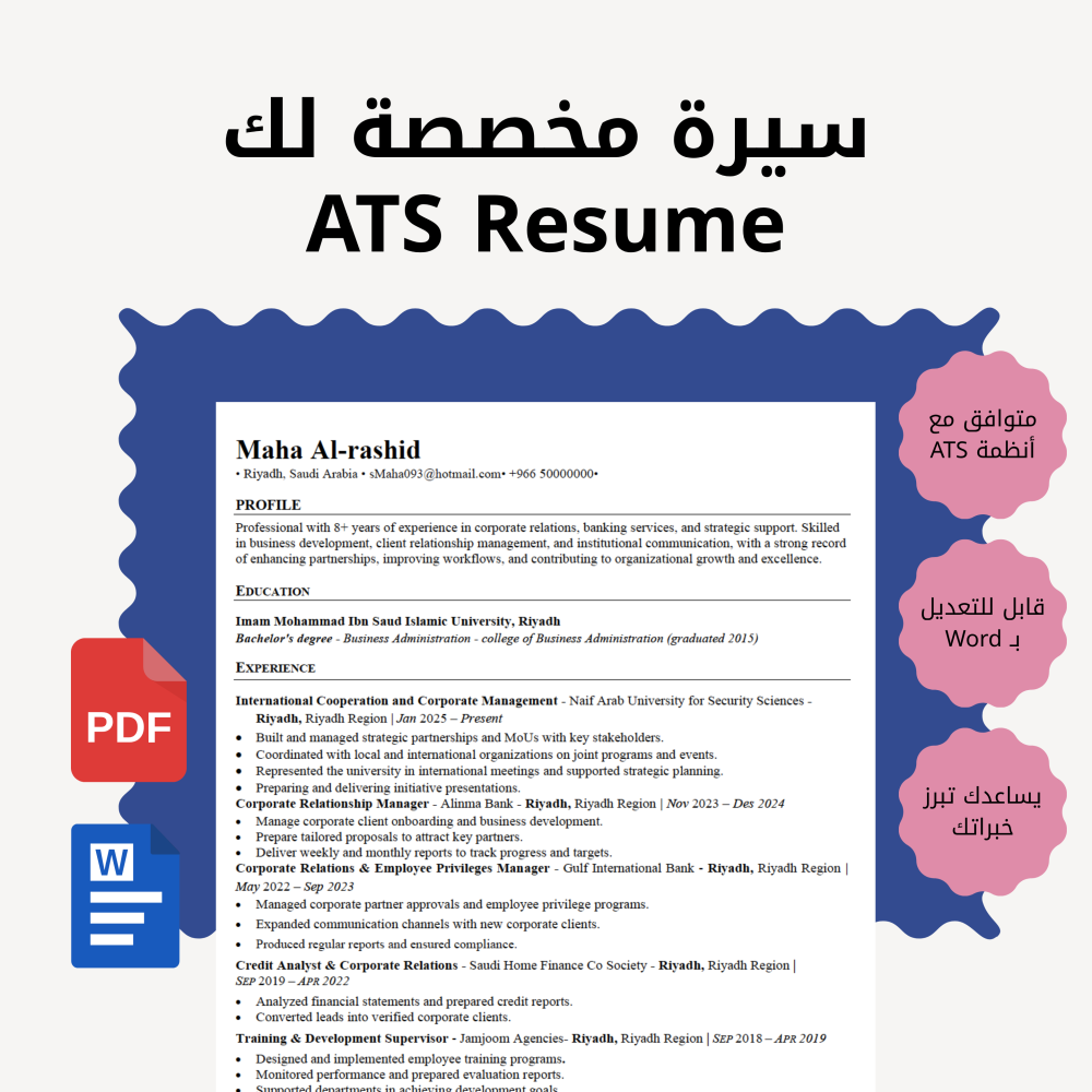 سيرة ذاتية حسب طلبك ومتوافقة مع أنظمة ATS