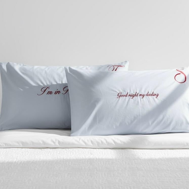 تأتي بتطريز دقيق يتلألأ بنعومة فوق السطح القطني الناعم، ليضيف إحساسًا خاصًا وكأنه توقيع راقٍ على سريرك.