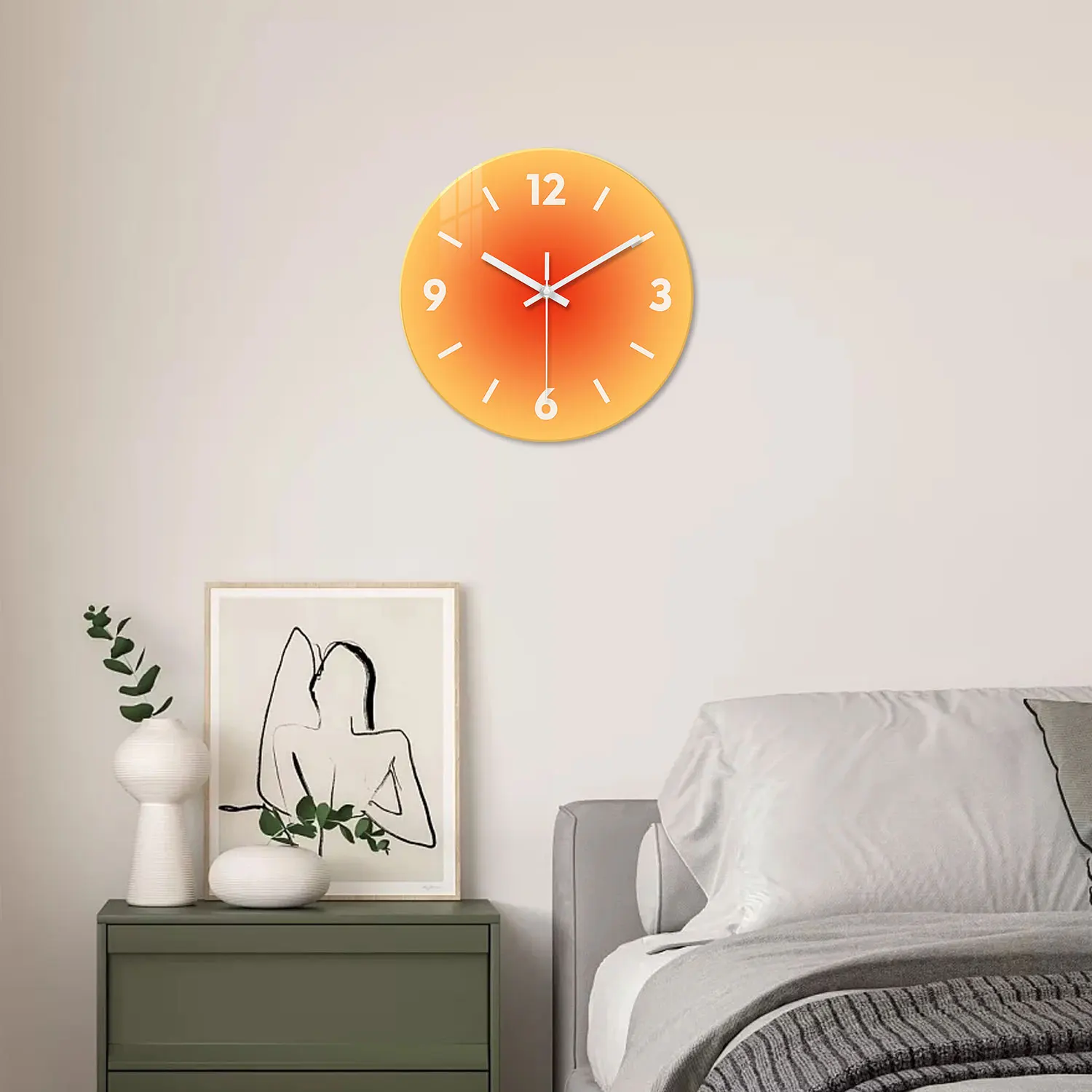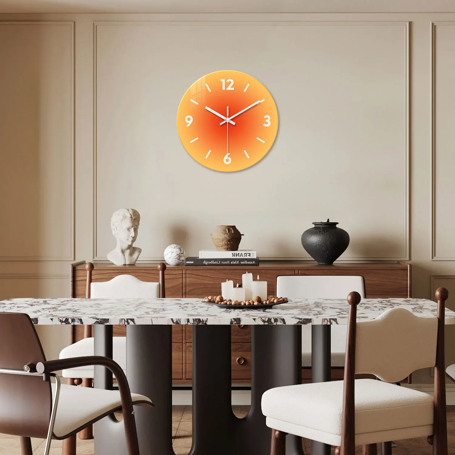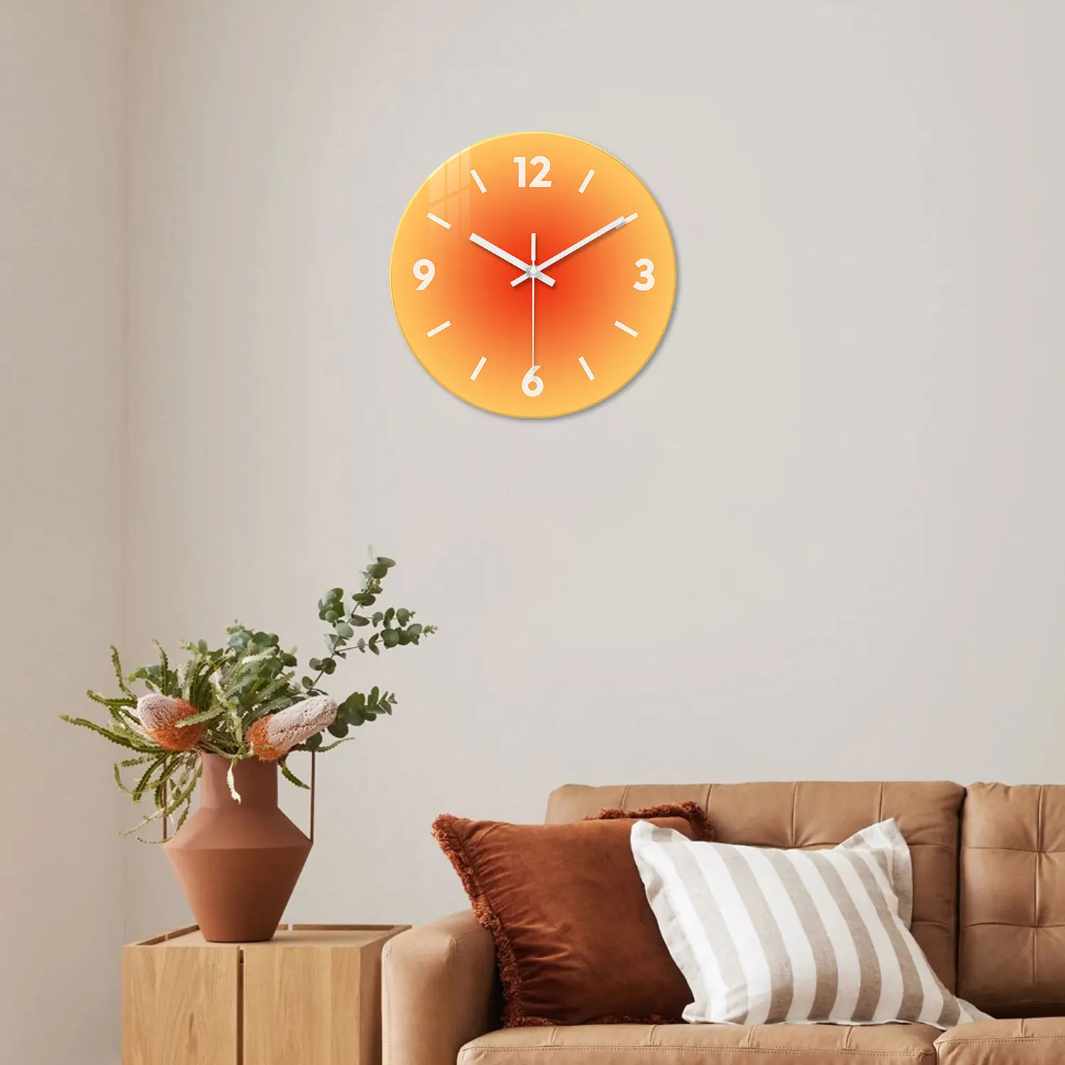 ساعة حائط زجاجية مبتكرة بتدرج لوني صلب بدون تكتكة - تعمل بالبطارية