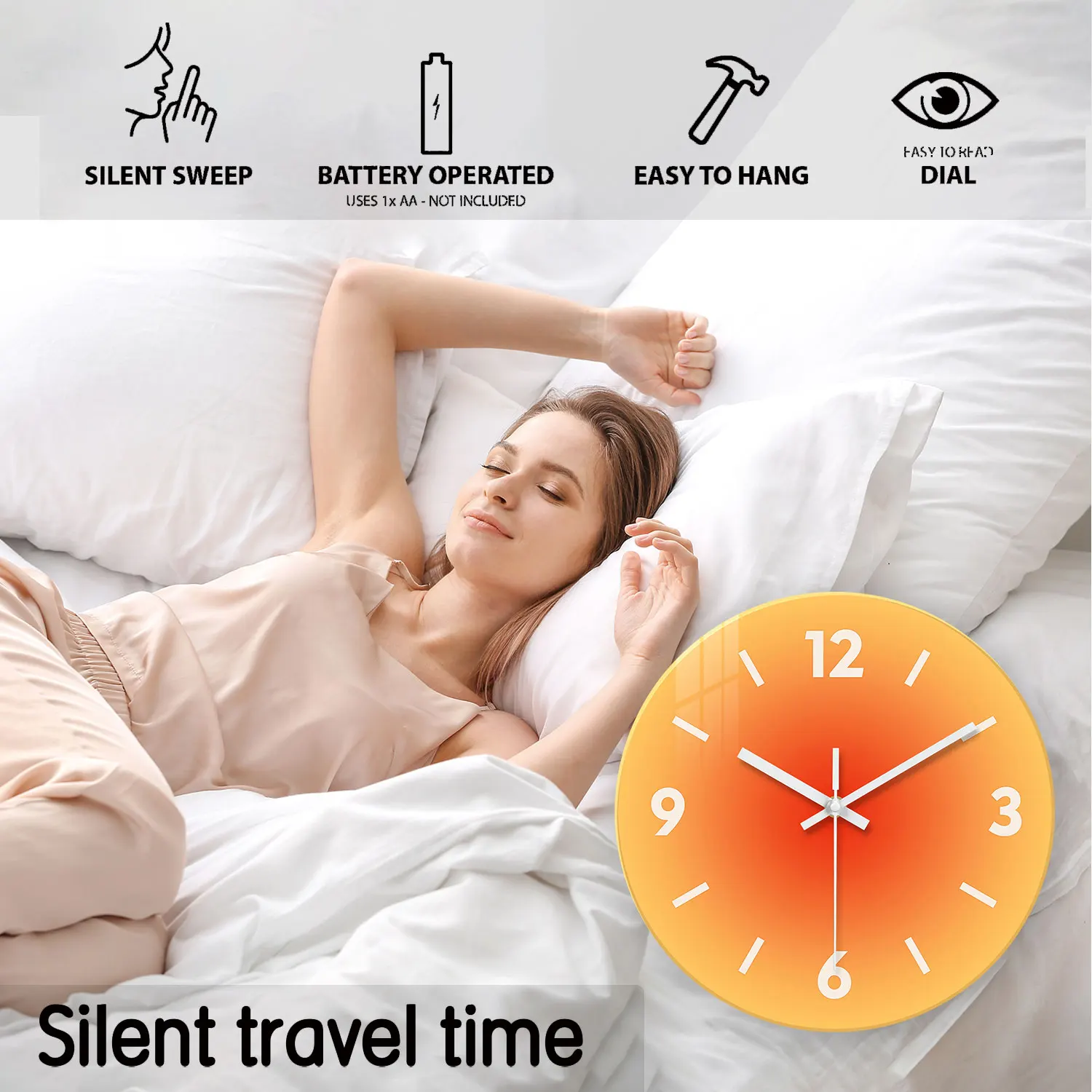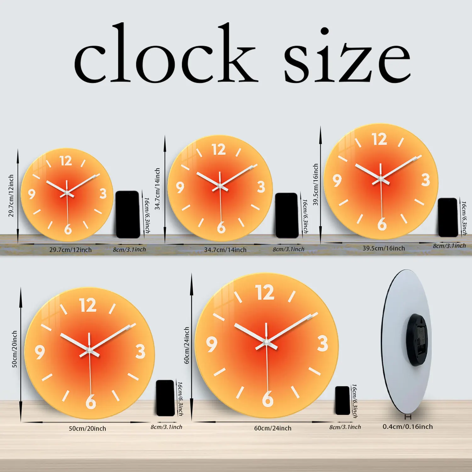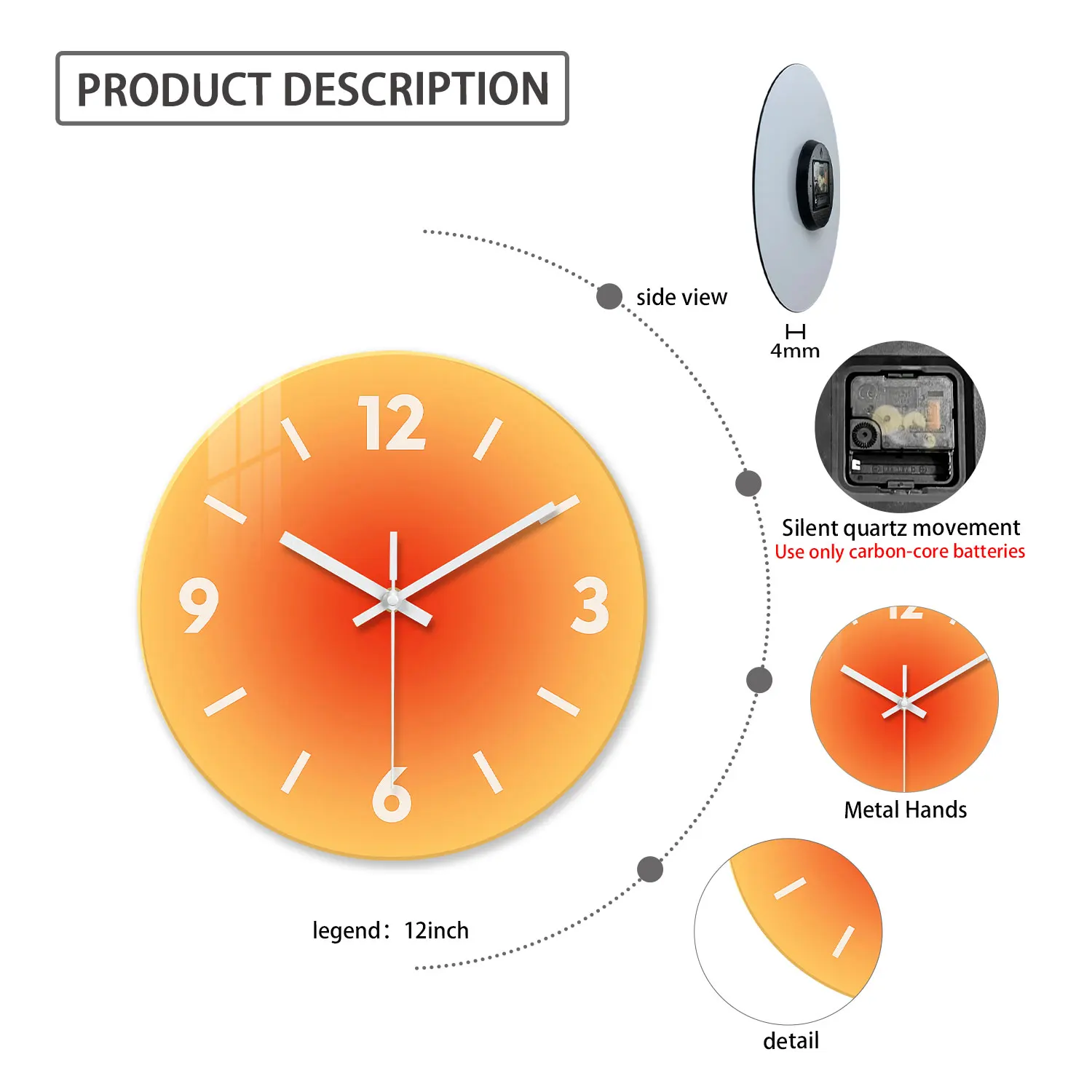 ساعة حائط زجاجية مبتكرة بتدرج لوني صلب بدون تكتكة - تعمل بالبطارية