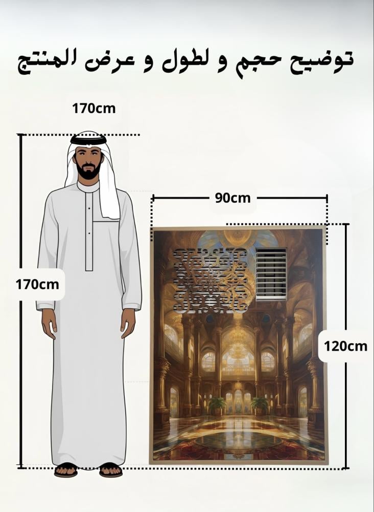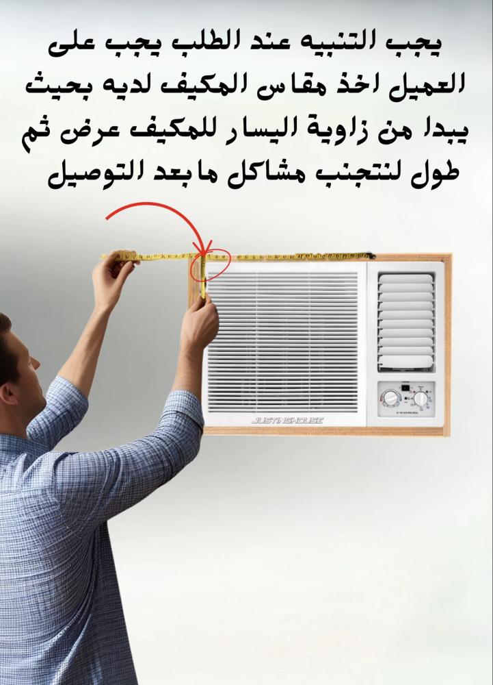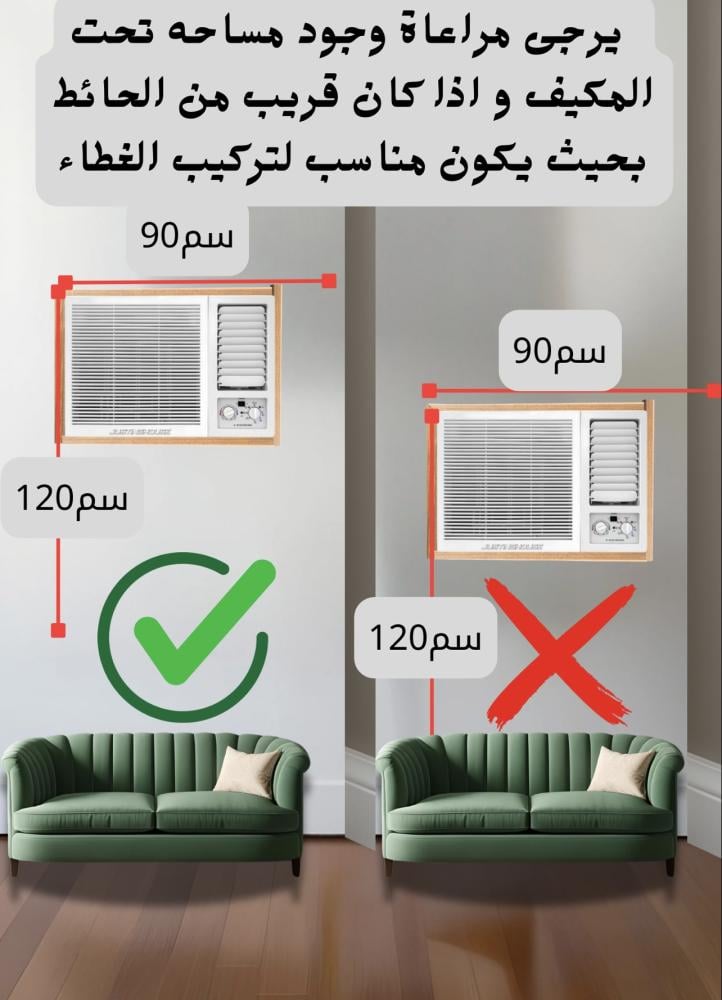 يجب اخذ مقاس المكيف من الزاوية اليسار من فوق بدايه و ينتهي عند ٩٠ سنتيمتر عرض و من نفس الزاوية يمتد طول
