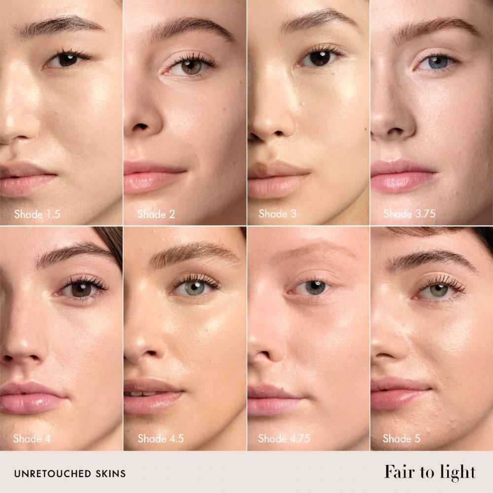 التركيبة غنية بالكافيين وفيتامين E اللذين يقللان ظهور الهالات السوداء، بينما يوفر الجليسيرين ترطيبًا يدوم طويلًا. كما يحتوي على أصباغ معدنية مكسوة بحمض أميني ليسهل مزجه على أي منطقة في الوجه. أما بنية الكونسيلر النضرة والخفيفة تذوب في البشرة لتمنحك تألقًا طوال اليوم وترطيبًا على مدار الساعة.