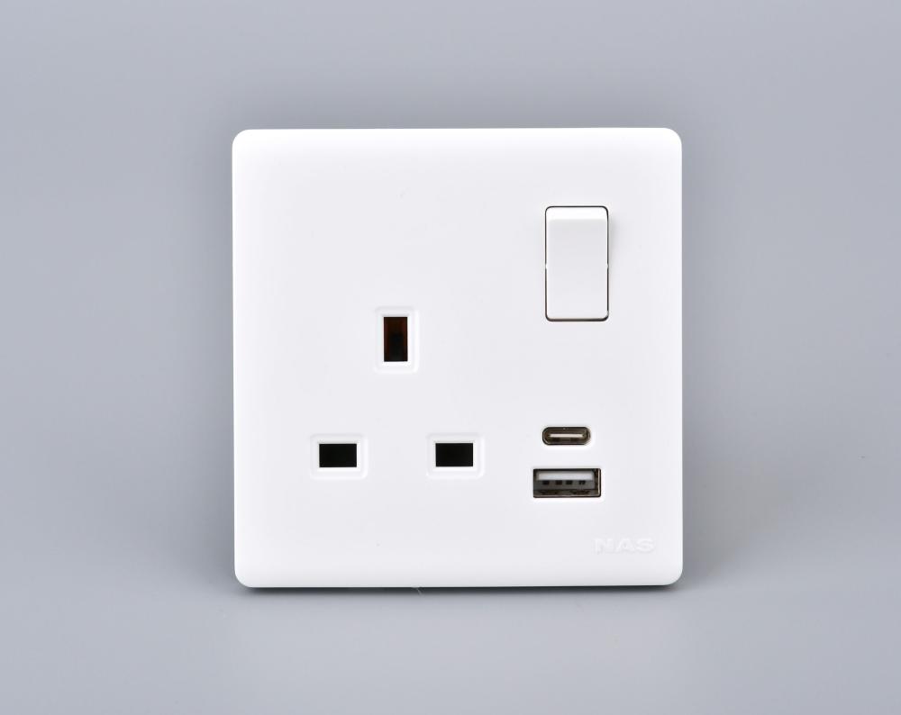 - فيش 13 أمبير بمفتاح مع شاحن (USB + Type C) 7×7