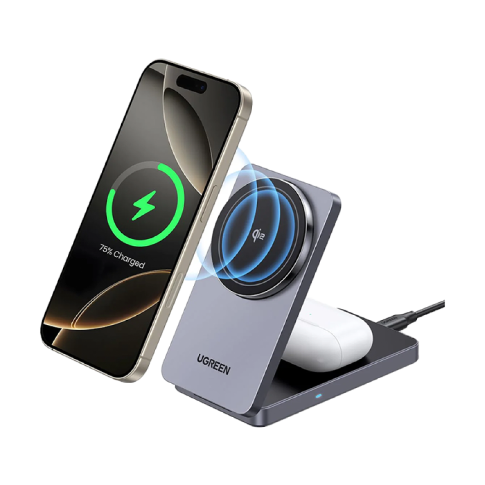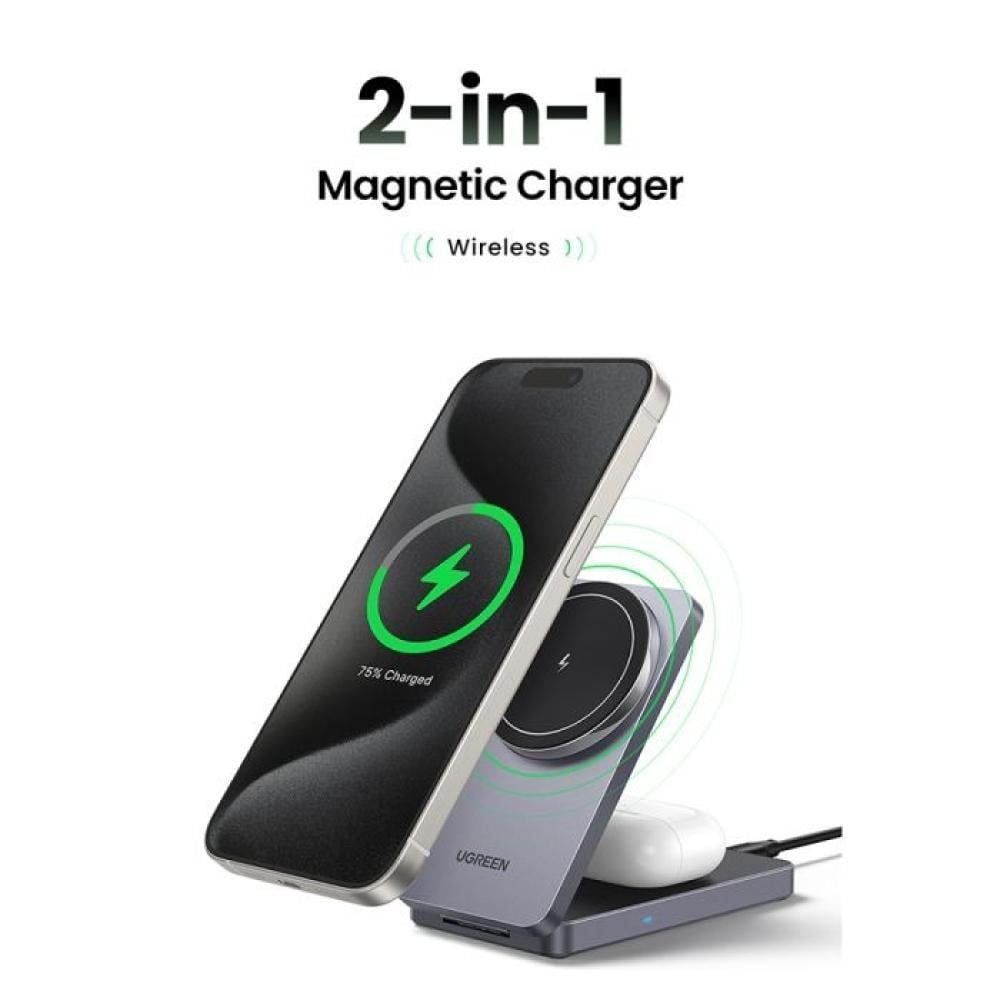 شاحن لاسلكي يوجرين 2 في 1 بمنصتين شحن وقابل للطي - رمادي