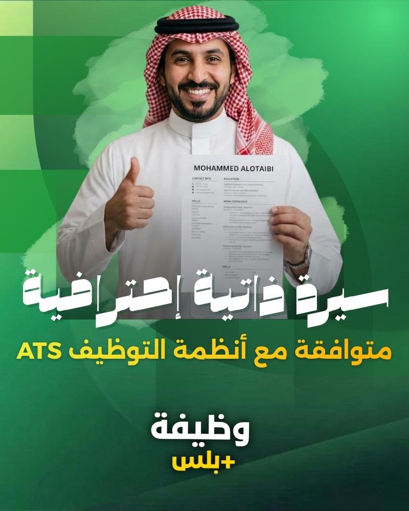 في وظيفة بلس نكتب لك سيرة ذاتية احترافية متوافقة مع أنظمة التوظيف (ATS) عشان تتجاوز الفلترة الآلية وتوصل مباشرة لطاولة مدير التوظيف.