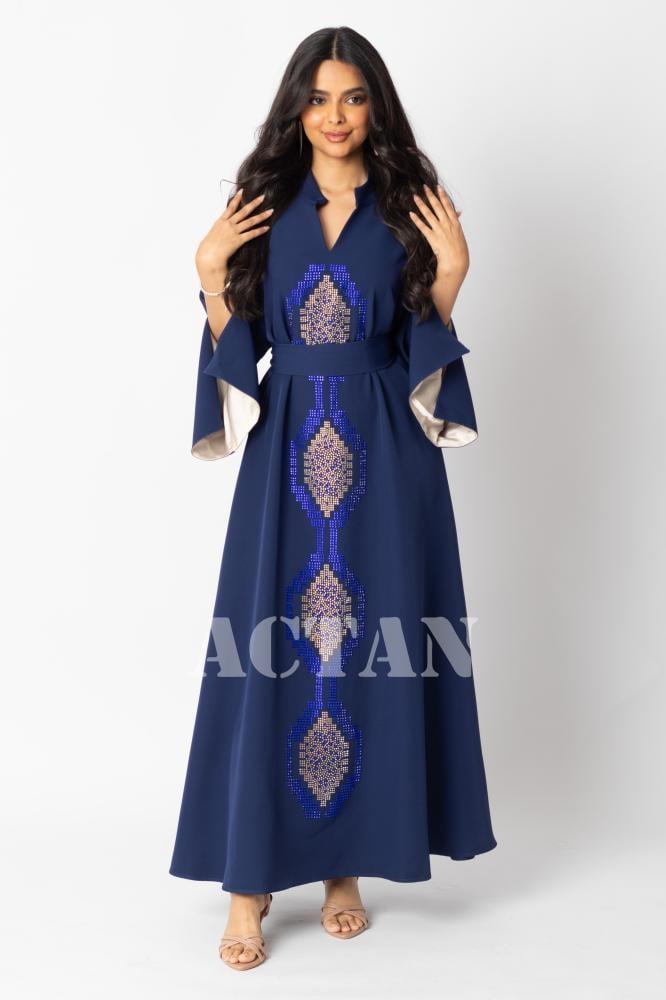 جلاببية ماكسي مزينة بفصوص لون ازرق