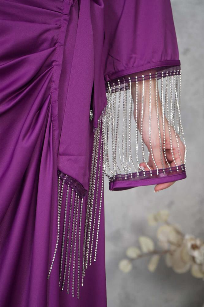 فستان برباط من الخصر مطرز بكريستال لون موف