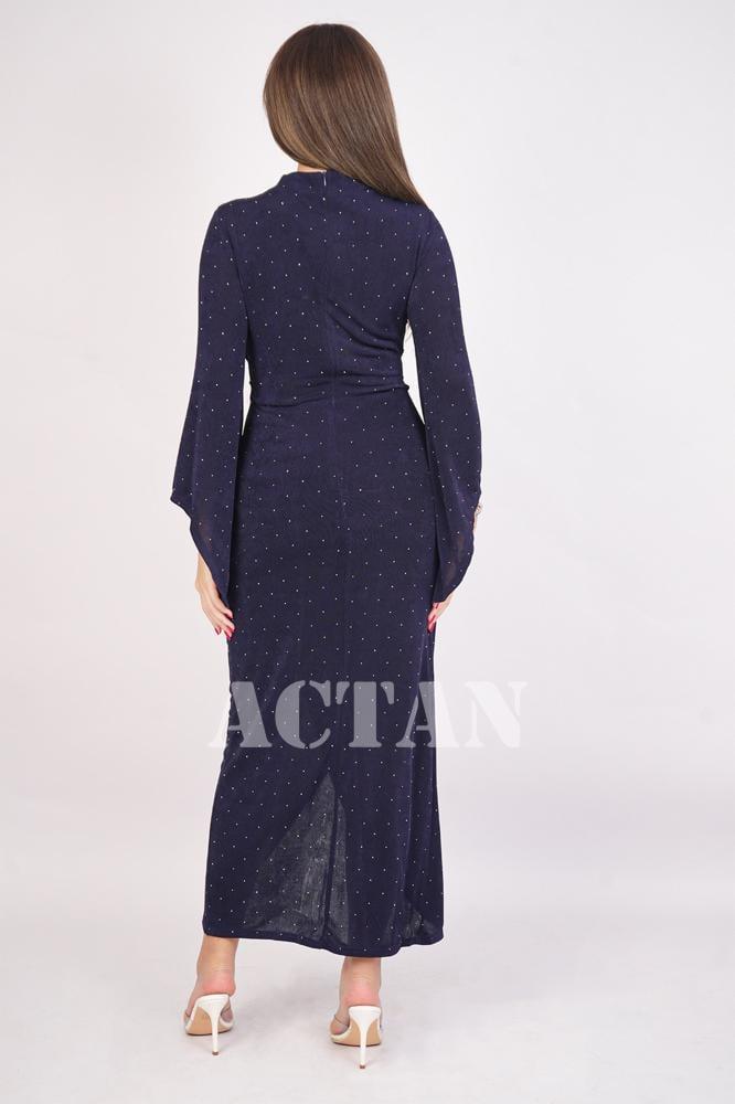 نوع القصة: فستان درابية ضيق مزين بفصوص بفتحة من الأمام