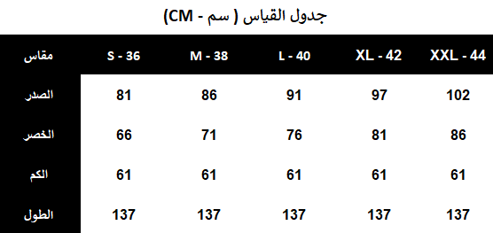 - إرشادات العناية: يغسل ويكوى بالبخار بدرجة حرارة منخفضة 40% ويجفف بالتعليق