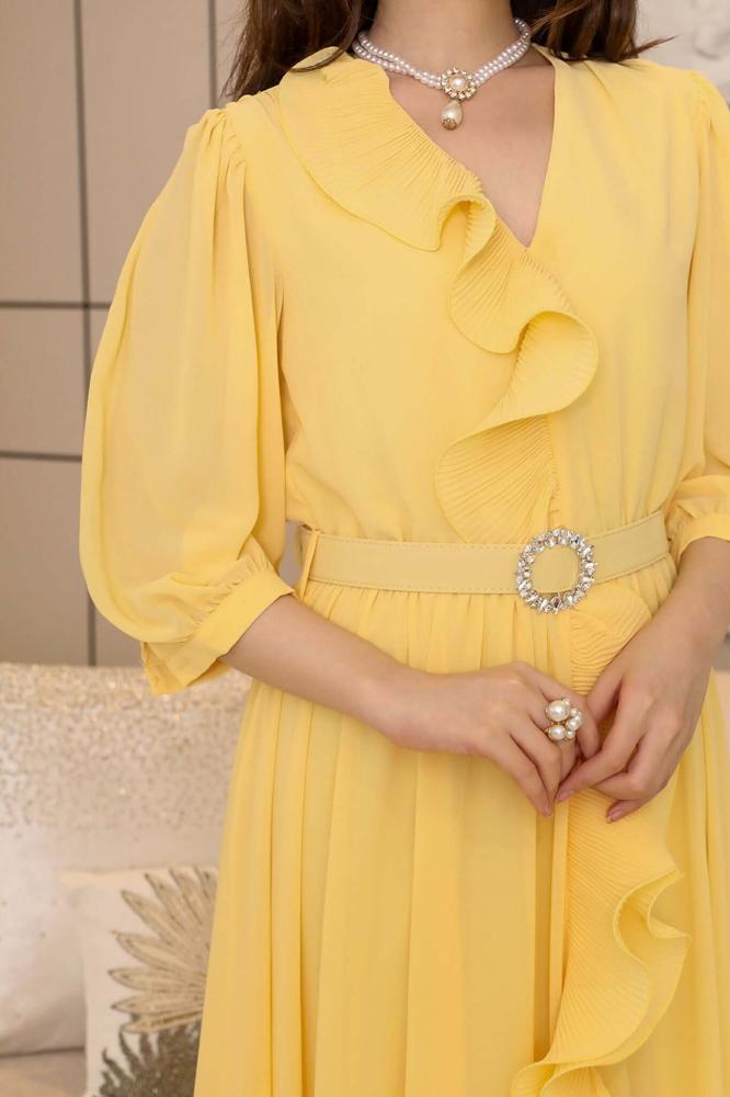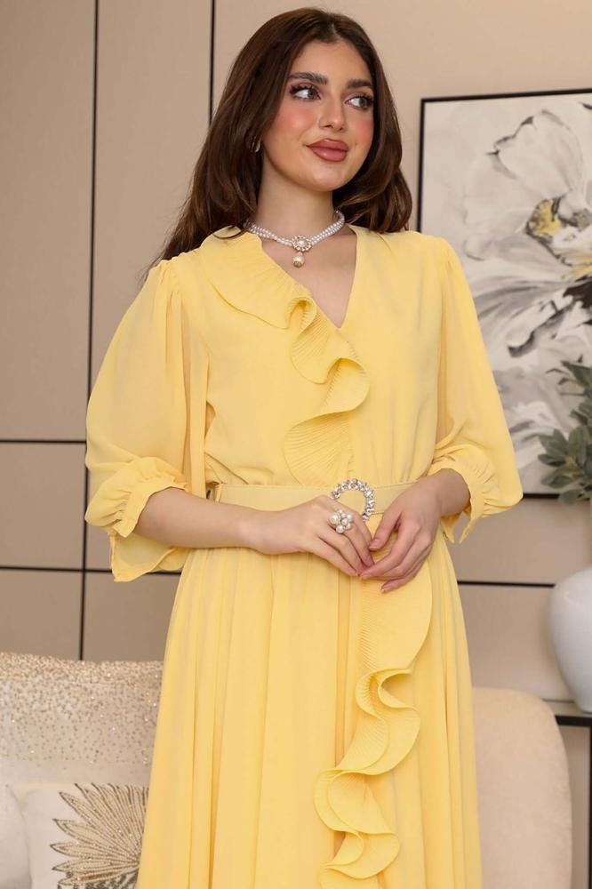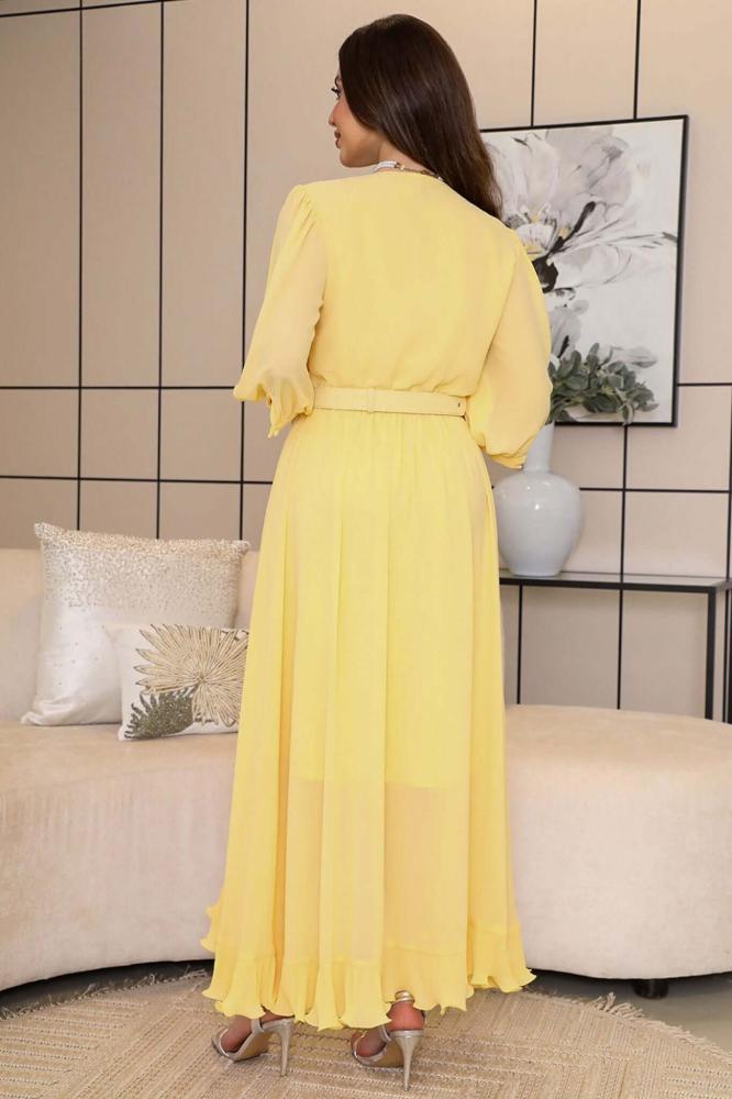 نوع التصميم: فستان شيفون بحزام على الخصر