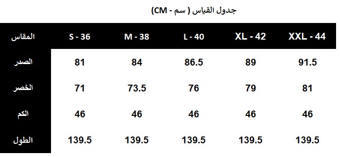 - إرشادات العناية: يُغسل ويُكوى بالبخار بدرجة حرارة منخفضة (40%) ويُجفف بالتعليق
