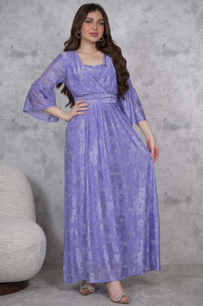 - نوع التصميم: فستان طويل تل مزين بفصوص