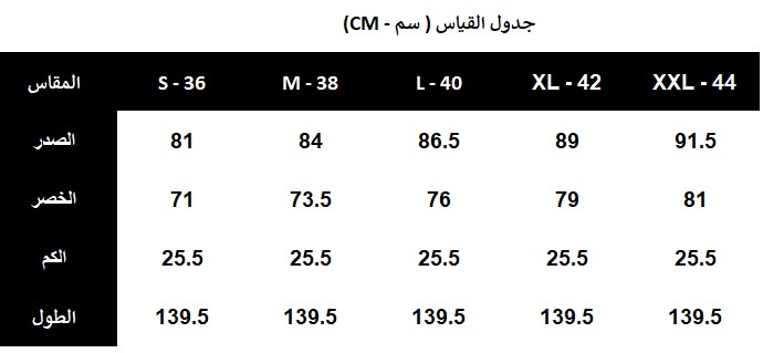 - نوع التصميم: فستان طويل جوبير بكم قصير