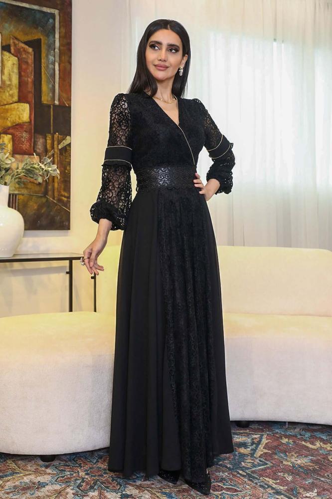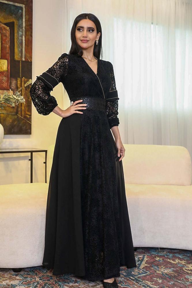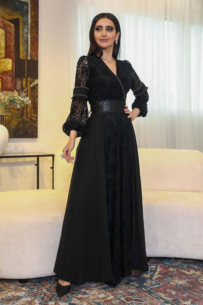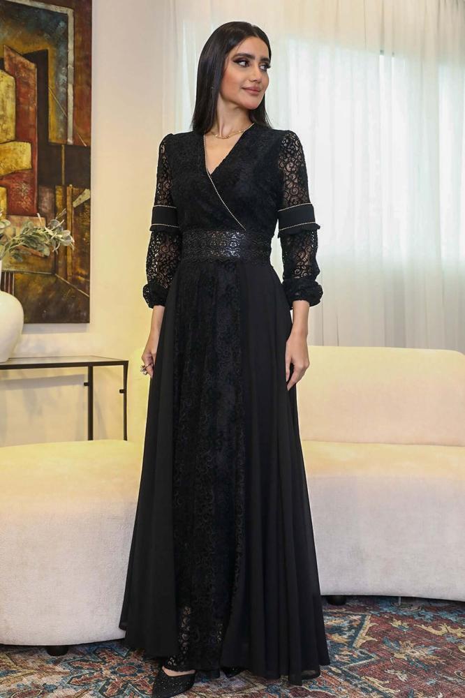 • نوع التصميم: فستان طويل دانتيل شيفون