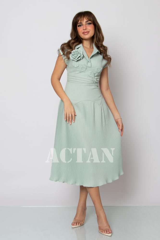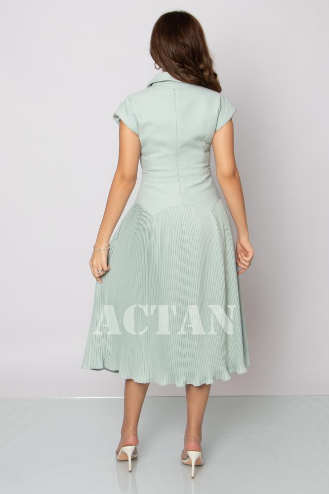 نوع القصة: فستان قصير لينن بكسرات بخصر درابيه بأكمام قصيرة وياقة مطوية
