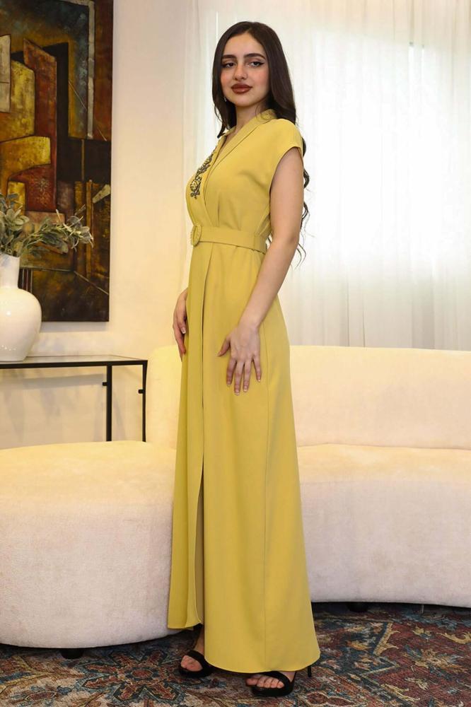- نوع التصميم: فستان ماكسي أنيق بحزام