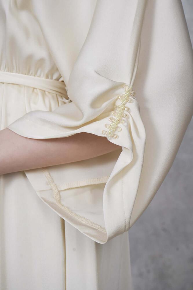 - نوع القصة: فستان ماكسي بياقة V مزينة بخرز، برباط عالخصر وأكمام 3/4