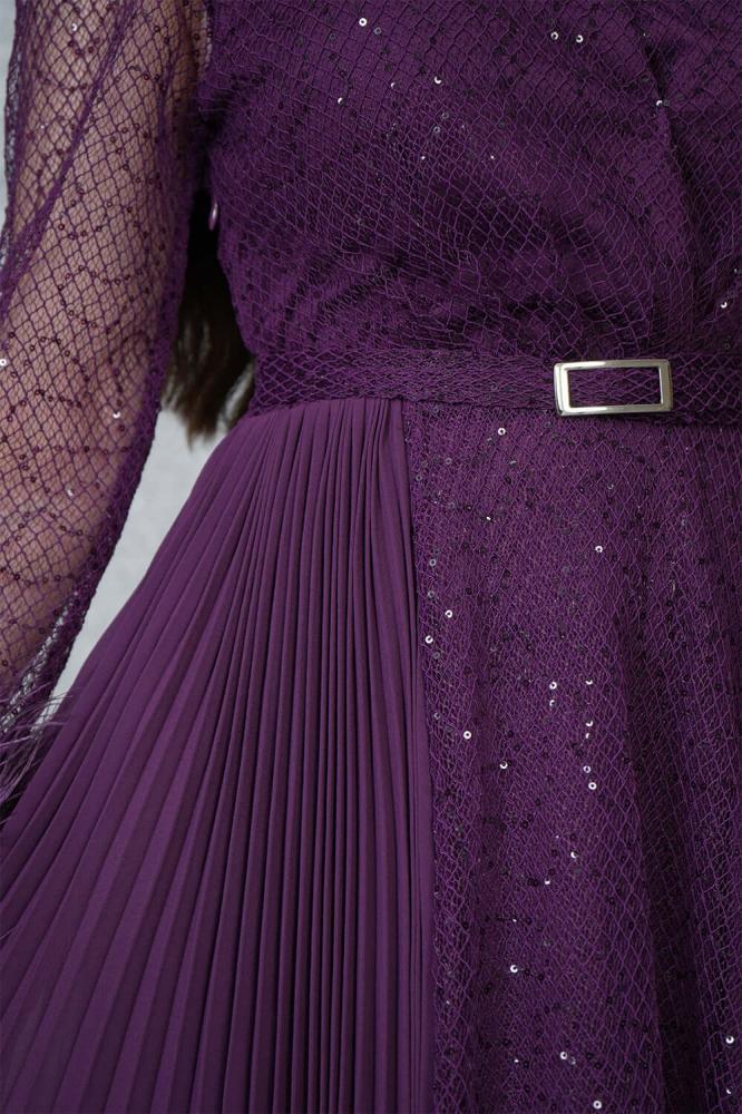 - نوع التصميم: فستان ماكسي مزين بالترتر بأكمام شفافة