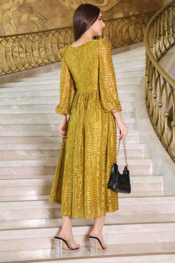 - نوع التصميم: فستان ميدي بفتحة من الصدر