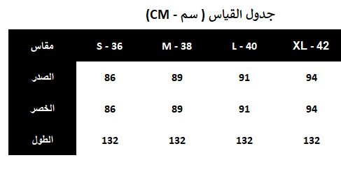 - إرشادات العناية: يغسل ويكوى بالبخار بدرجة حرارة منخفضة (40%) ويجفف بالتعليق