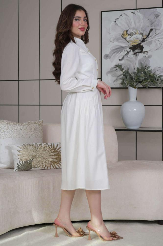 - نوع التصميم: فستان ميدي كتان بجيوب