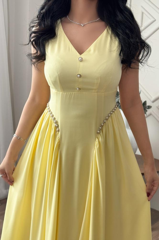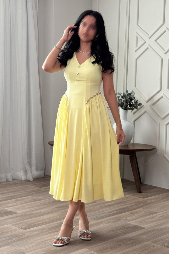 مواصفات المنتج:الخامة: كريبنوع التصميم: فستان ميدي كريب بأزرارنوع القصة: فستان ميدي مزين بأزرار مع تطريز وكسرات جانبية بياقة V وأكمام كتالمناسبة: خروج عام أو مناسبات خاصةالخصر: ضيقالياقة: Vالأكمام: كتالتمدد: غير قابل للتمدد