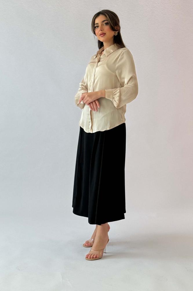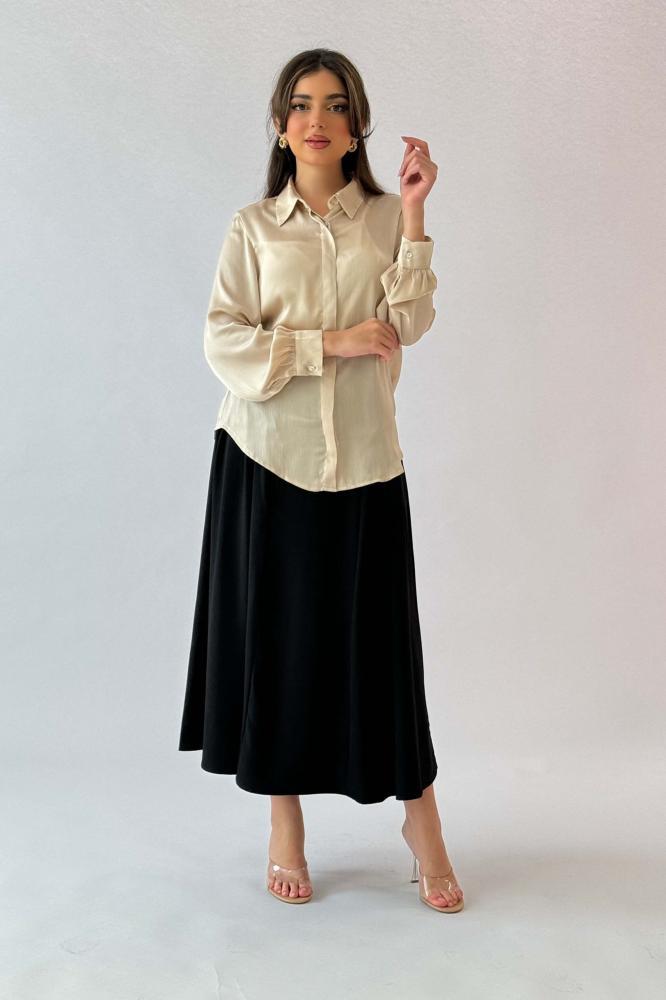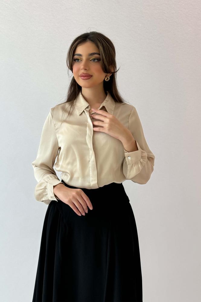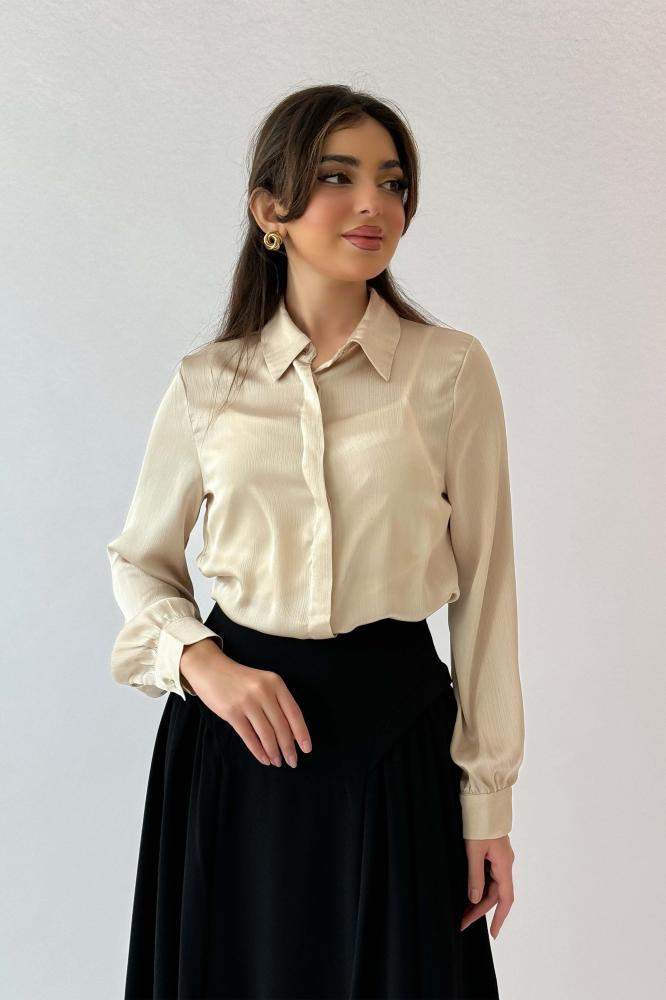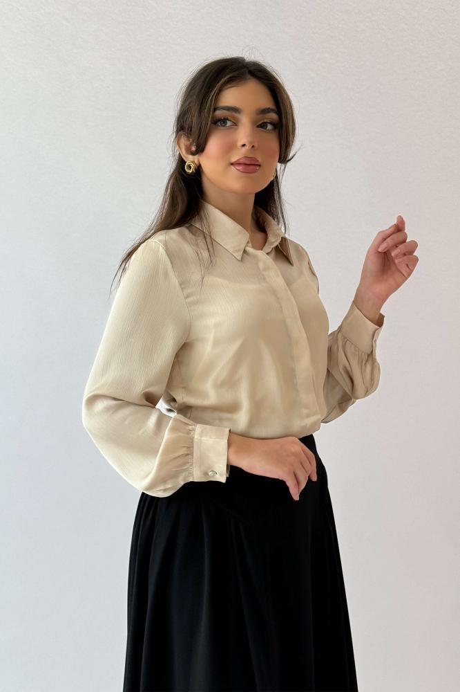 قميص سادة بأزارير مخفية لون بيج