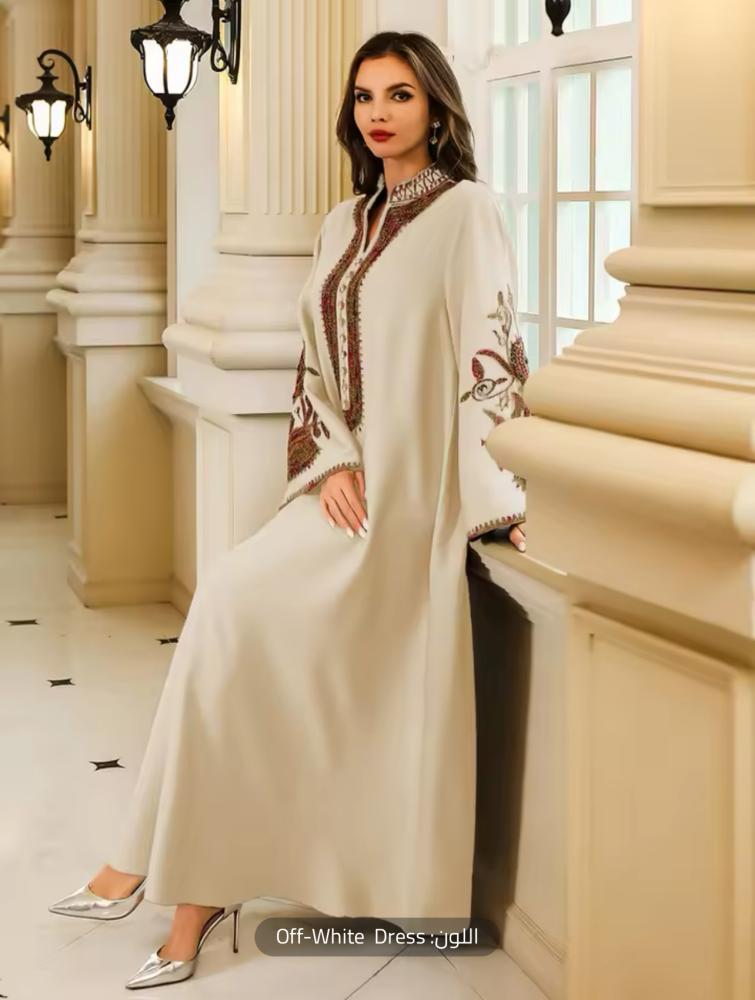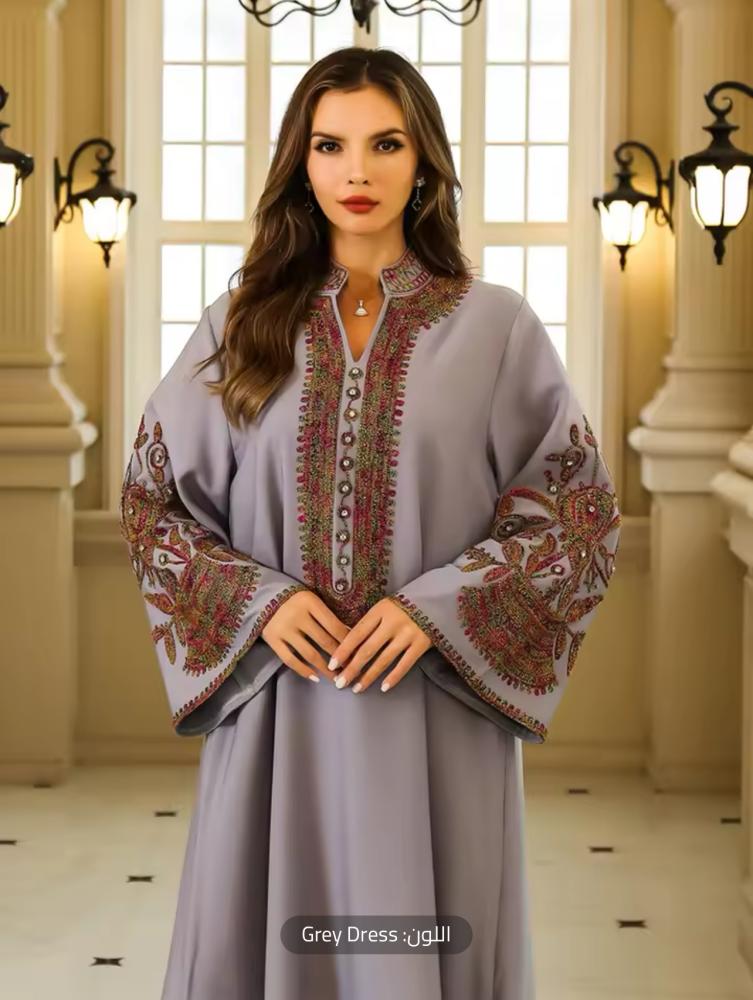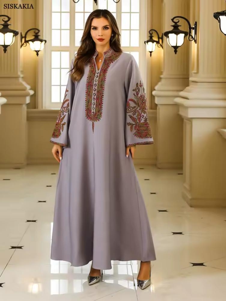 سيسكاكيا-فساتين نسائية طويلة مطرزة برقبة على شكل حرف V ، عبايات دبي ، روب إسلامي مغربي ، باندانا تركية ، ملابس عربية ، أزياء إسلامية