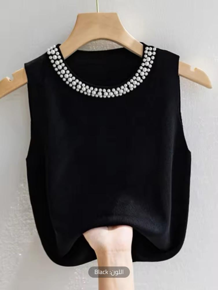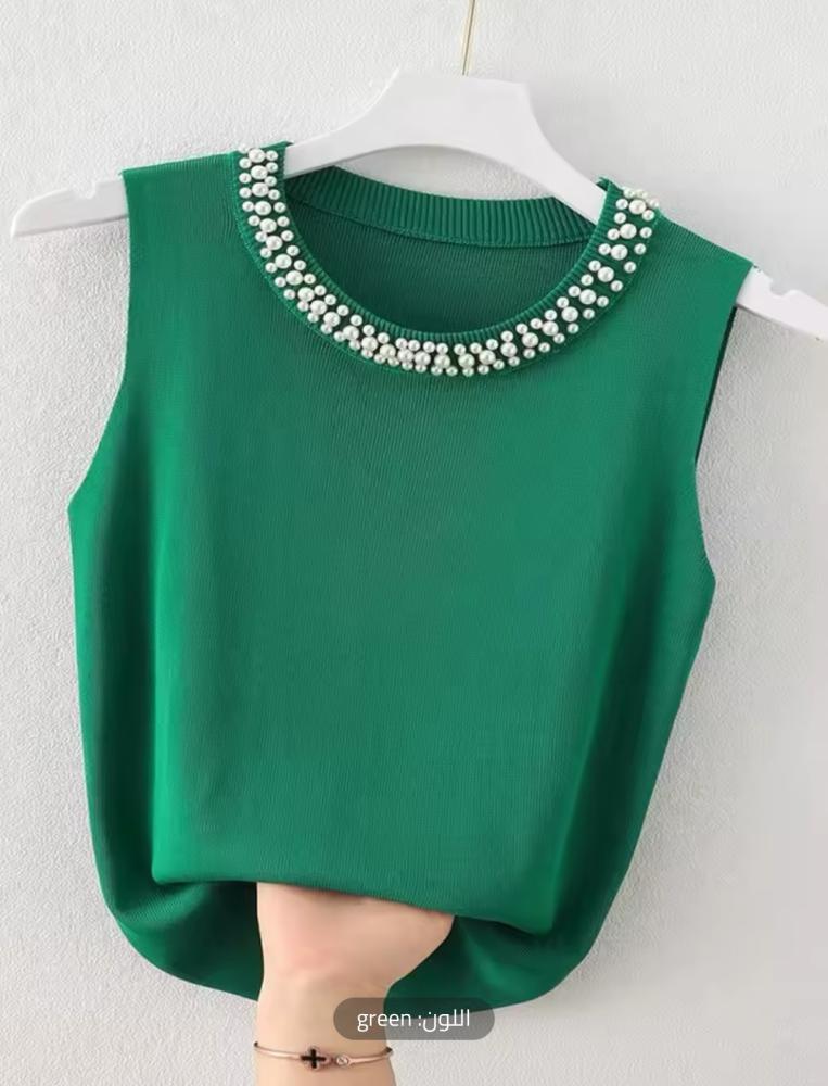 سترات نسائية محبوكة كورية بلوزات نسائية متينة بلوزات موهير دي مودا موضة جديدة للسيدات بدون أكمام مطرز بالخرز قطع علوية رفيعة غير رسمية