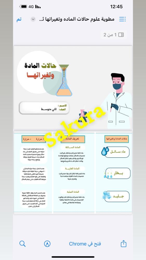 مطويه علوم ( حالات الماده وتغيراتها ) صف ثاني متوسط الترم الاول