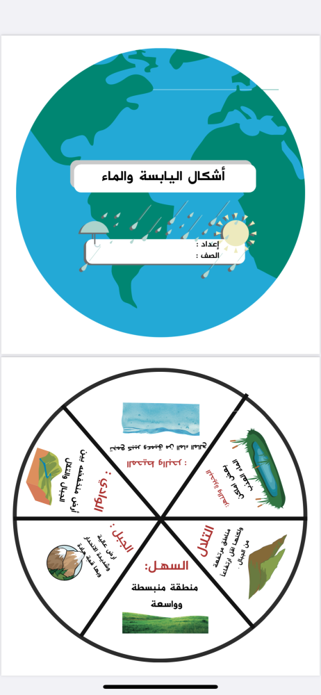 مطوية علوم الصف الثاني الابتدائي ( الفصل الثاني )اشكال اليابسه والماء