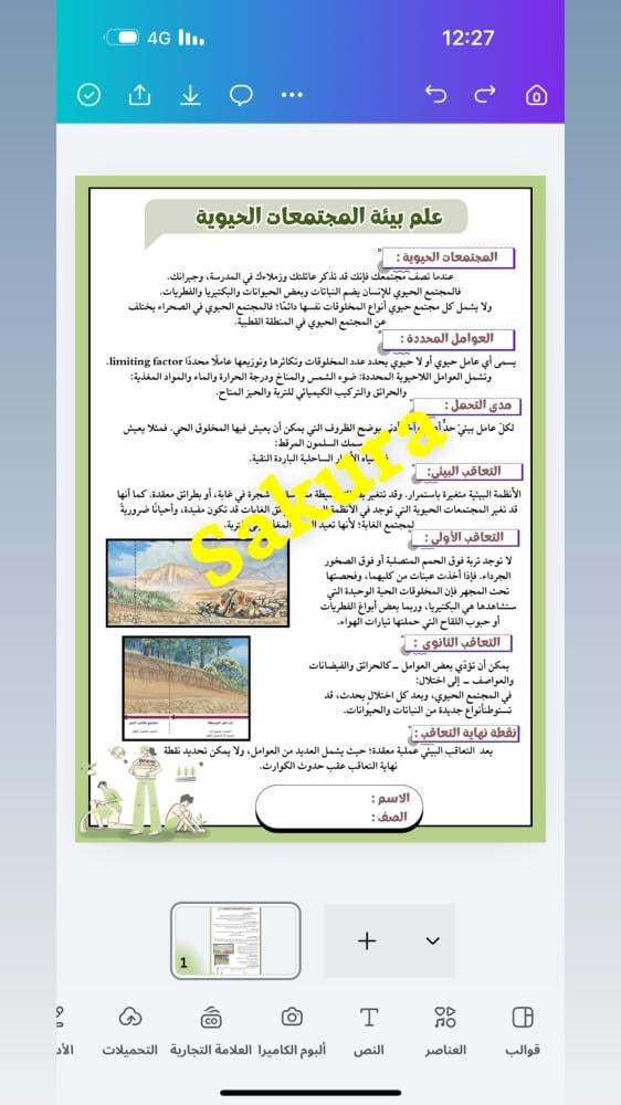 مشروع علم البيئة ( علم البيئه والمجتمعات الحيويه ) صف اول ثانوي الترم الثاني