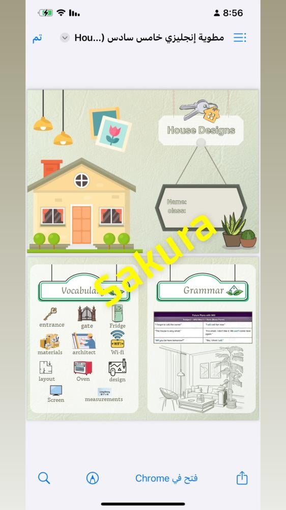 مطويه إنجليزي ( House Designs)صف خامس وسادس ابتدائي الترم الاول