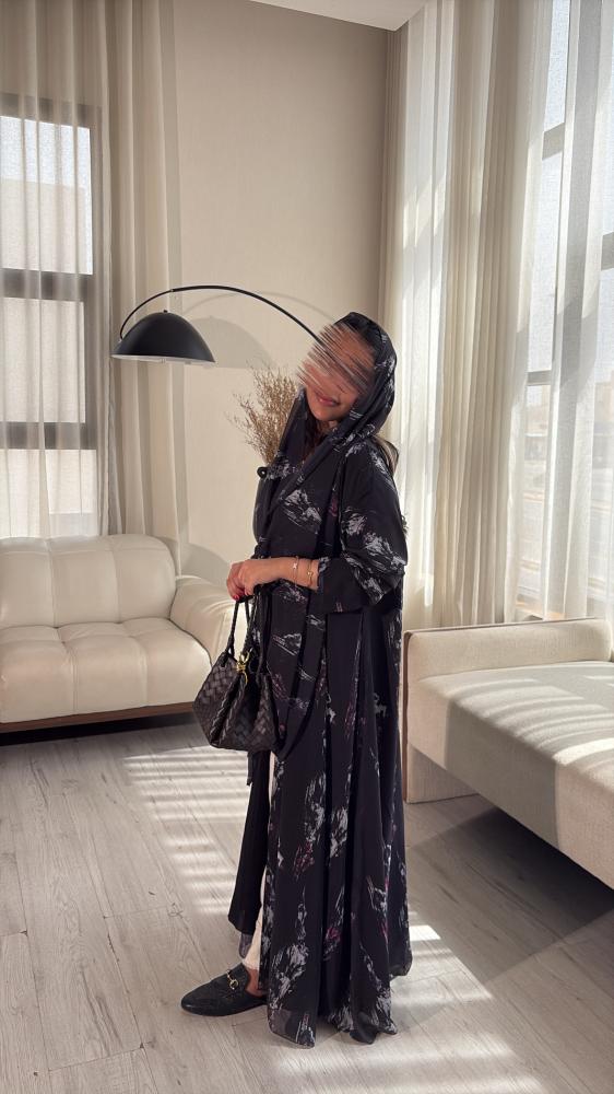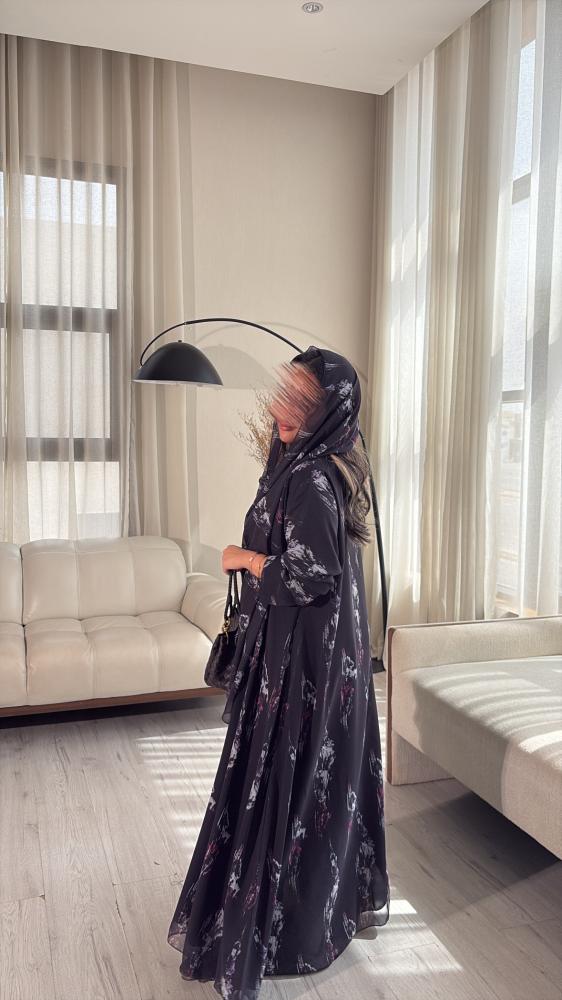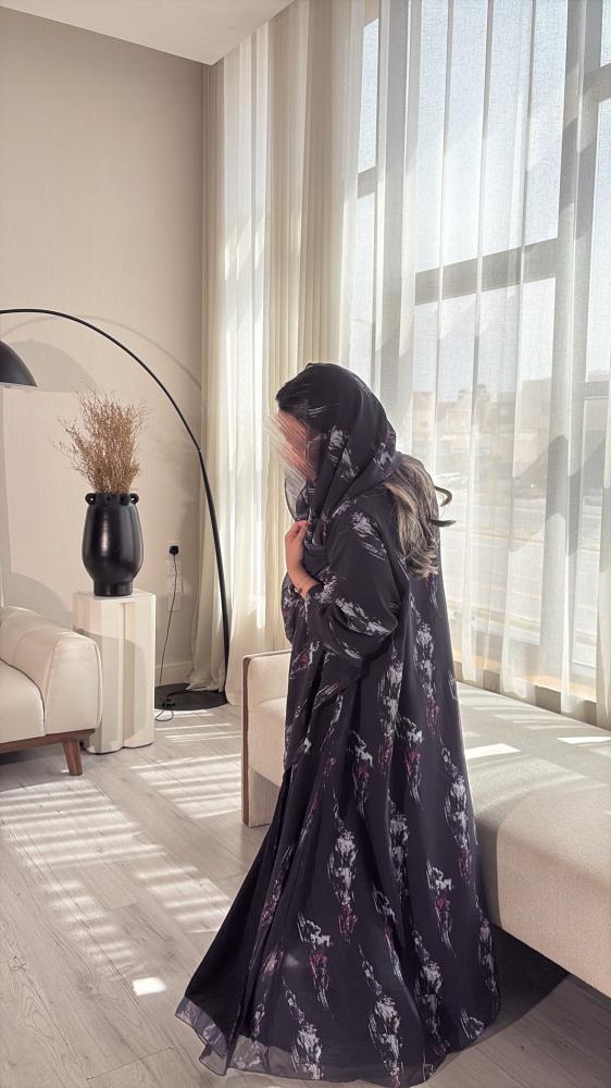 عباية بقماش شيفون مشجر مبطن .