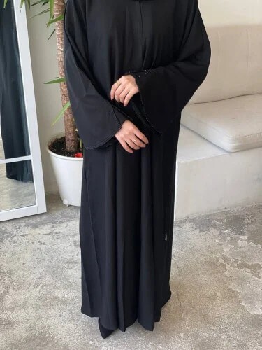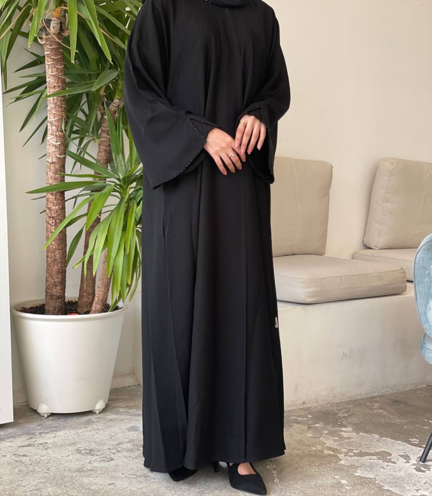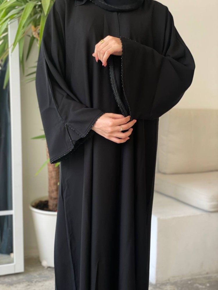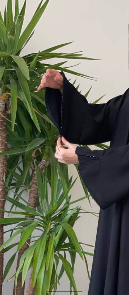 • تضفي الأكمام البسيطة المطرزة بالخرز لمسة من الفخامة والأناقة على العباية.