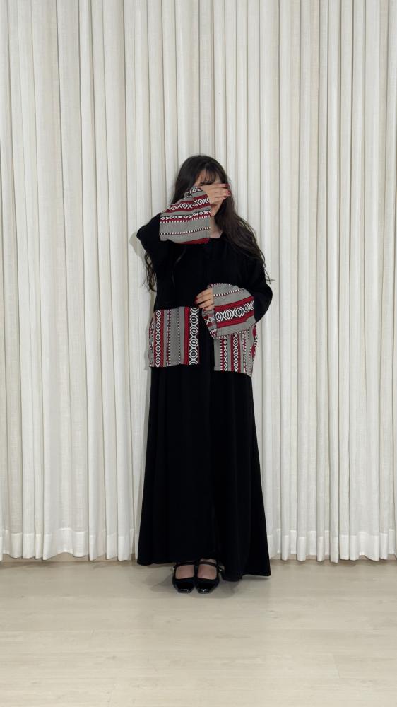 عبايه نص كلش مع جاكيت منفصل يلبس فوق العبايه ، نوع القماش كريب ملكي