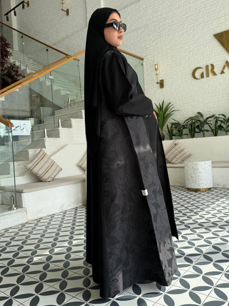 عباية متميزة بقماش لمار، تصميم A-line مميز ومريح.