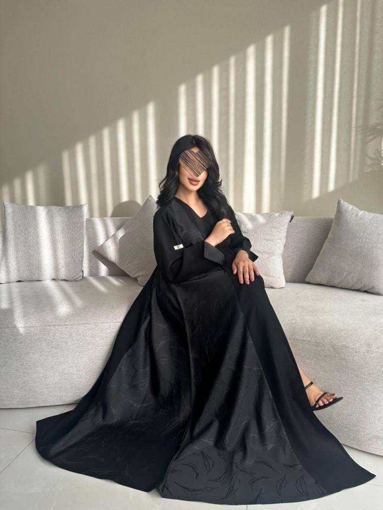 القماش : كتان بتدخيله جاكار في كسرات جوانب العبايه وداخل أكمام العبايه بفتحه في الكم